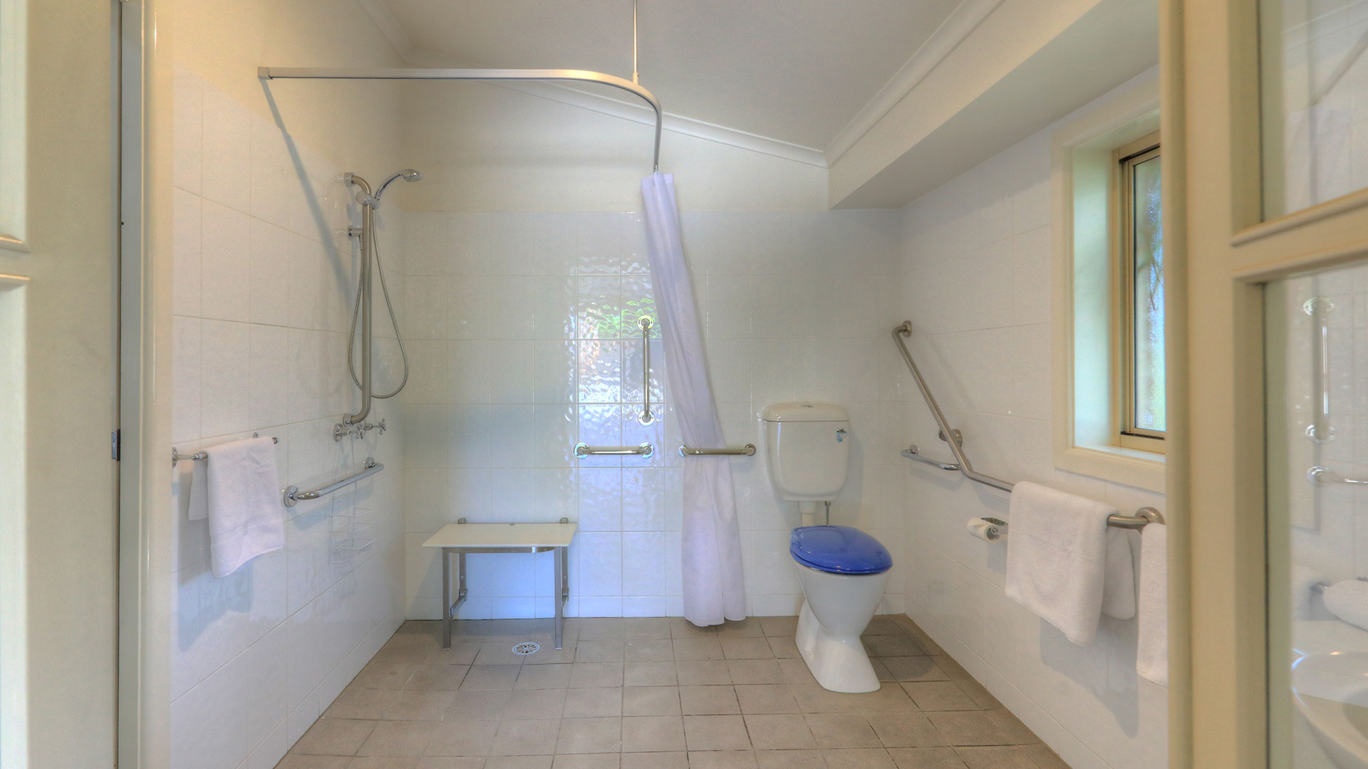 Designed for the comfort of the disabled and carers, our Executive Queen Access rooms offer spacious smoke free rooms with 1 queen and 1 single bed. A half wall between the beds offers the ultimate comfort and privacy. Wall mounted TV, air con, tea and coffee making facilities and fresh milk provided. Secure off street parking, very quiet rooms. We have 2 Access rooms and they both comply with all regulated facilities .