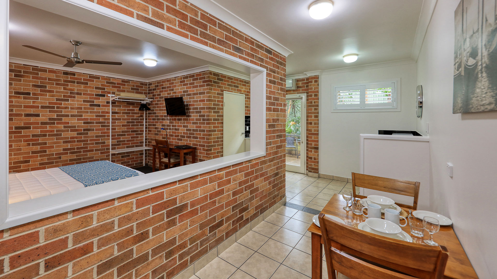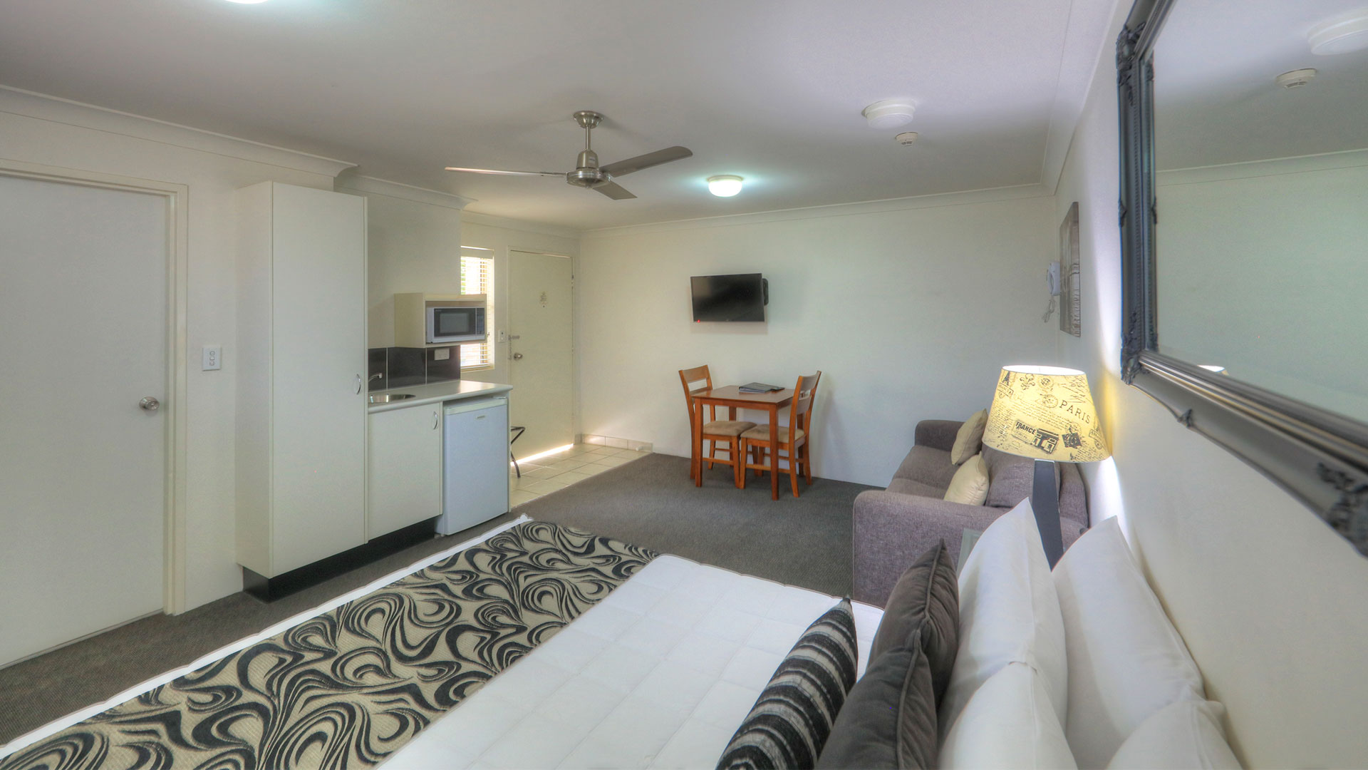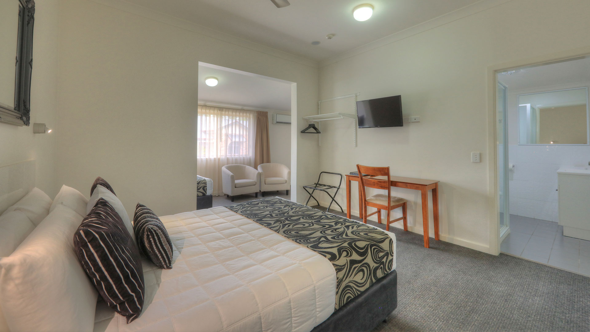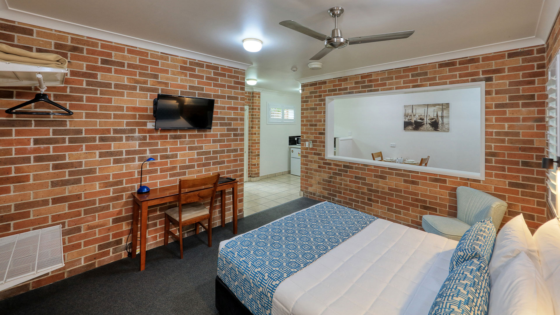 At Heritage River Motor Inn, all our rooms have air con, tea and coffee making facilities, with kitchen sink, microwave, queen and single bed or a queen bed only. Each room has a wall mounted television, and ironing facilities.